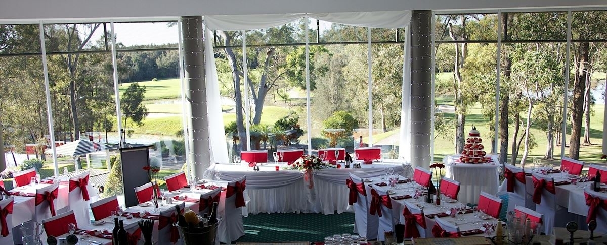 The reception room, located on the upper level of the clubhouse, offers magnificent views through the floor to ceiling glass walls. Flood-lit gardens and a candle-lit room create a romantic atmosphere. The reception area is capable of comfortably seating 130 guests. Choose a menu from our extensive range, both buffet and a la carte or consult with our Executive Chef to design a menu to suit your individual requirements.